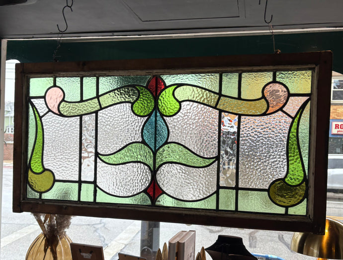 Antique Stained Glass and Leaded Glass Window Panel