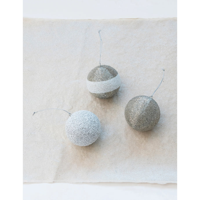 Beaded Ball Ornaments - Silver and White