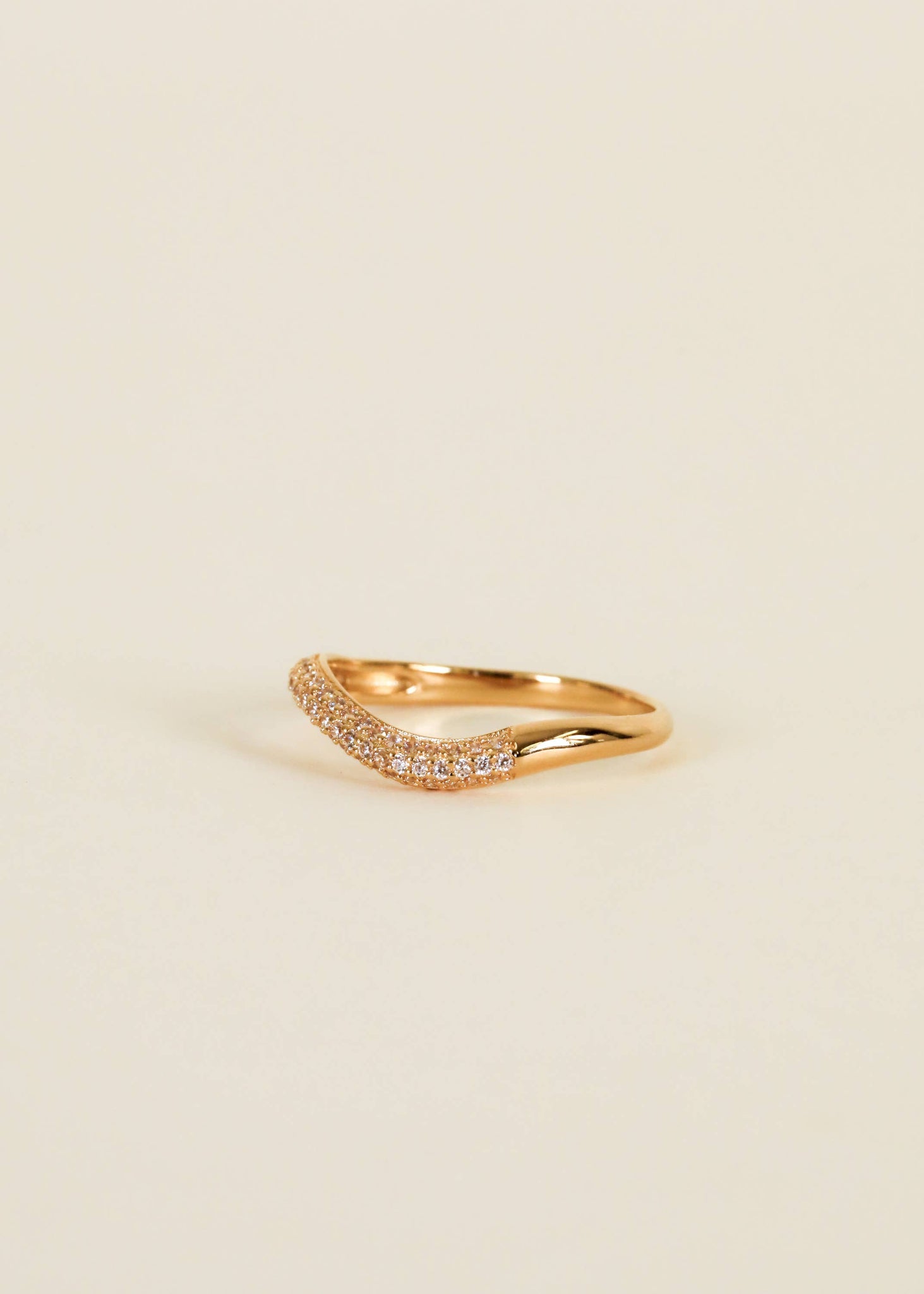 Organic elegance at its finest! This stunning Pave Wave Ring features champagne cubic zirconia on a curved band that adds extra sparkle and style to your look! It's the perfect addition to dress up any outfit for day or night.
