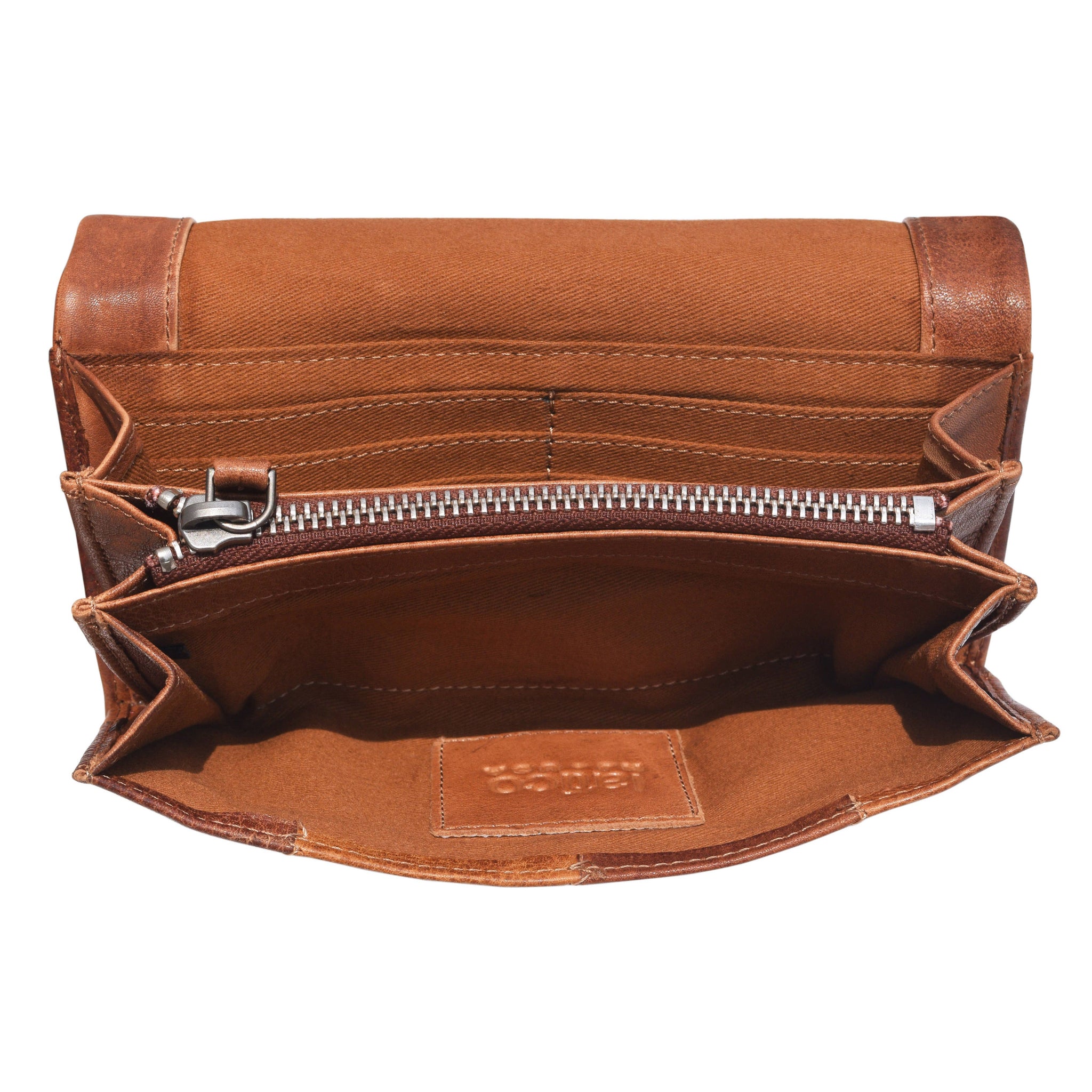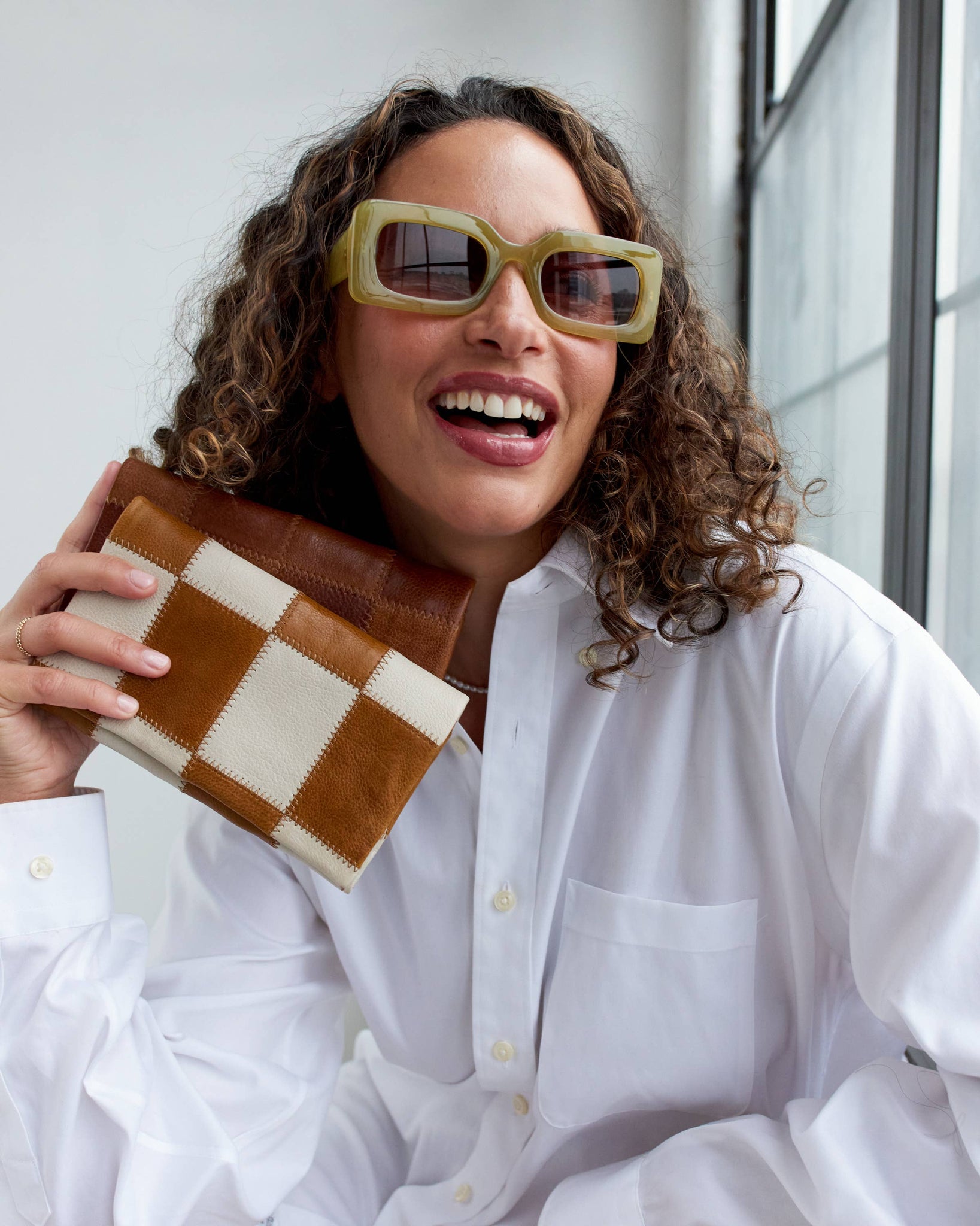 The Patch Handcrafted 100% leather wallet is here! Every hide is unique so you will notice natural variations in the grain texture and shading which are hallmarks of high-quality. Front full flap with patch detailing is secured by a magnetic snap closure Interior organization with 1 zippered pocket, 2 principal compartments, and 8 credit card slots Fabric lined interior.