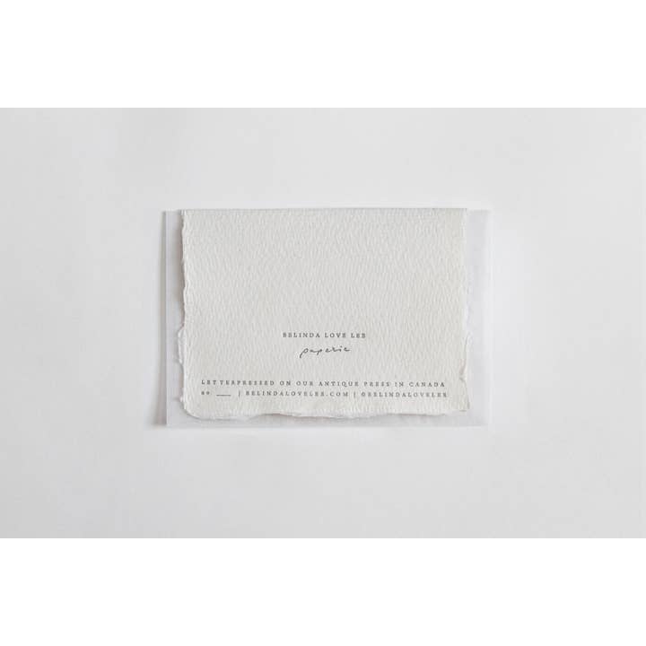 Each card is letterpress on handmade cotton rag paper and comes with a glassine envelope. Size: 3" x 4.25".