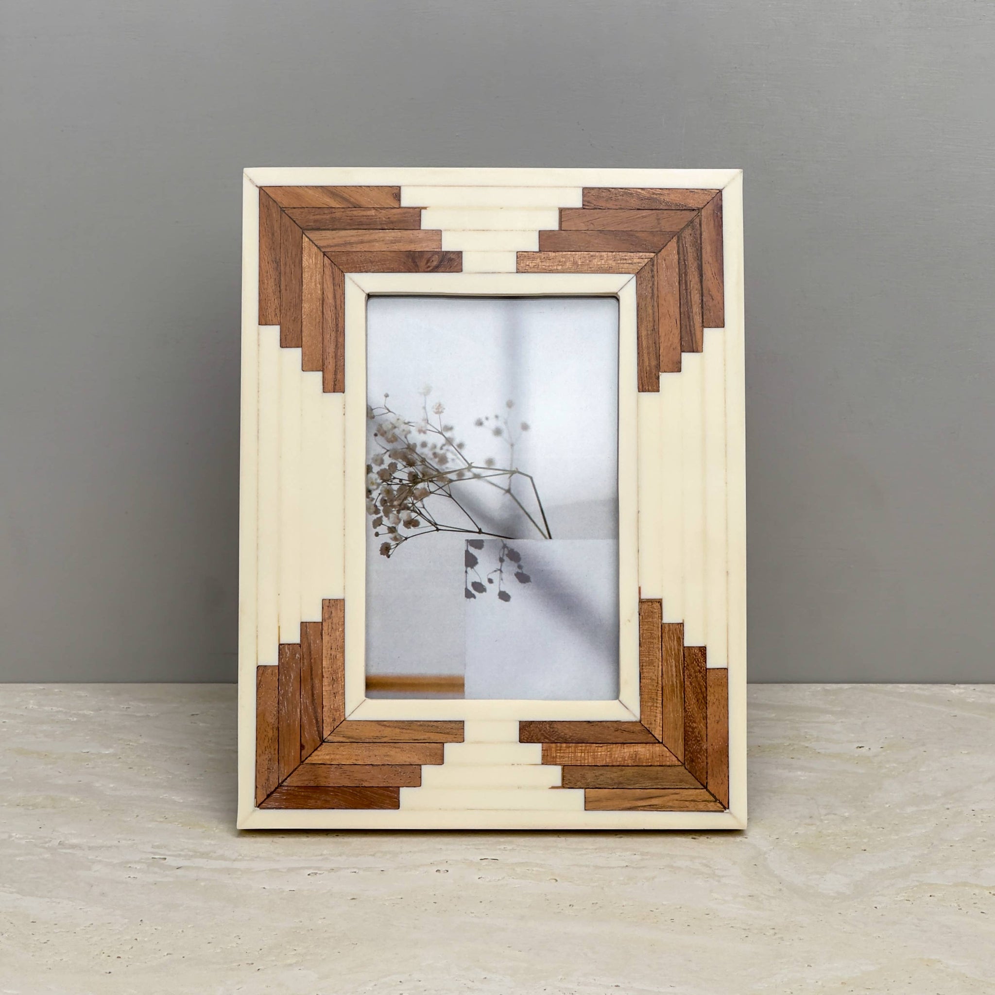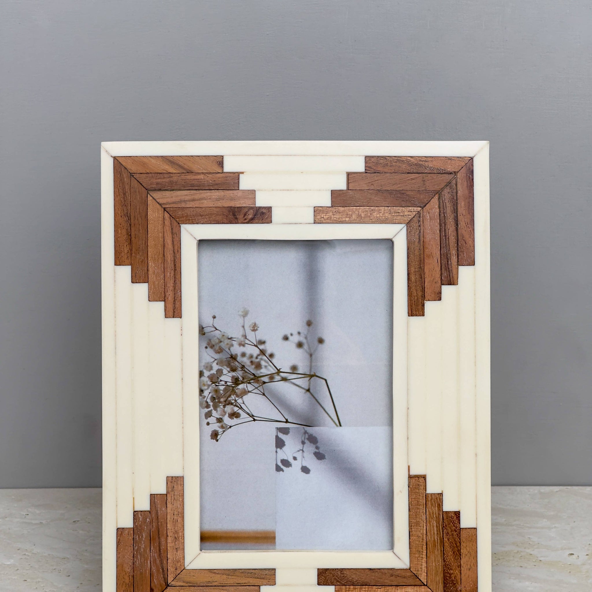 The Bone & Wood Photo Frame 4 X 6 is a timeless piece of home decor. Made by skilled artisans in India, it blends traditional craftsmanship with contemporary design. This frame is made with sustainability in mind, respecting both the environment and the communities that provide the materials.